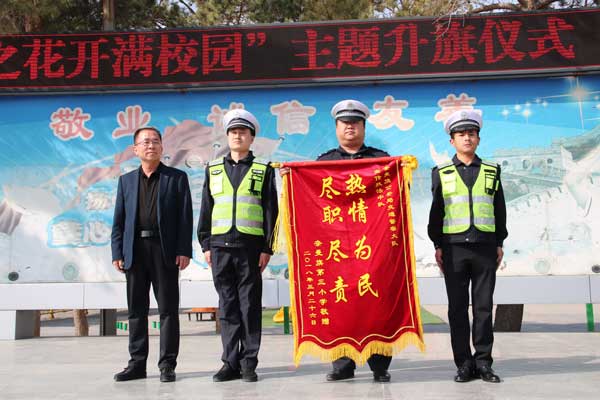 为了表达对365277_det365娱乐官网登录_36365最新线路检测公安局交通警察大队宣传执法中队护学岗长期以来护学工作的感激之情。3月26日上午,365277_det365娱乐官网登录_36365最新线路检测大镇第三小学全体师生满怀热情向该中队送上写有“热情为民,尽职尽责”的锦旗,以表示感激之意。